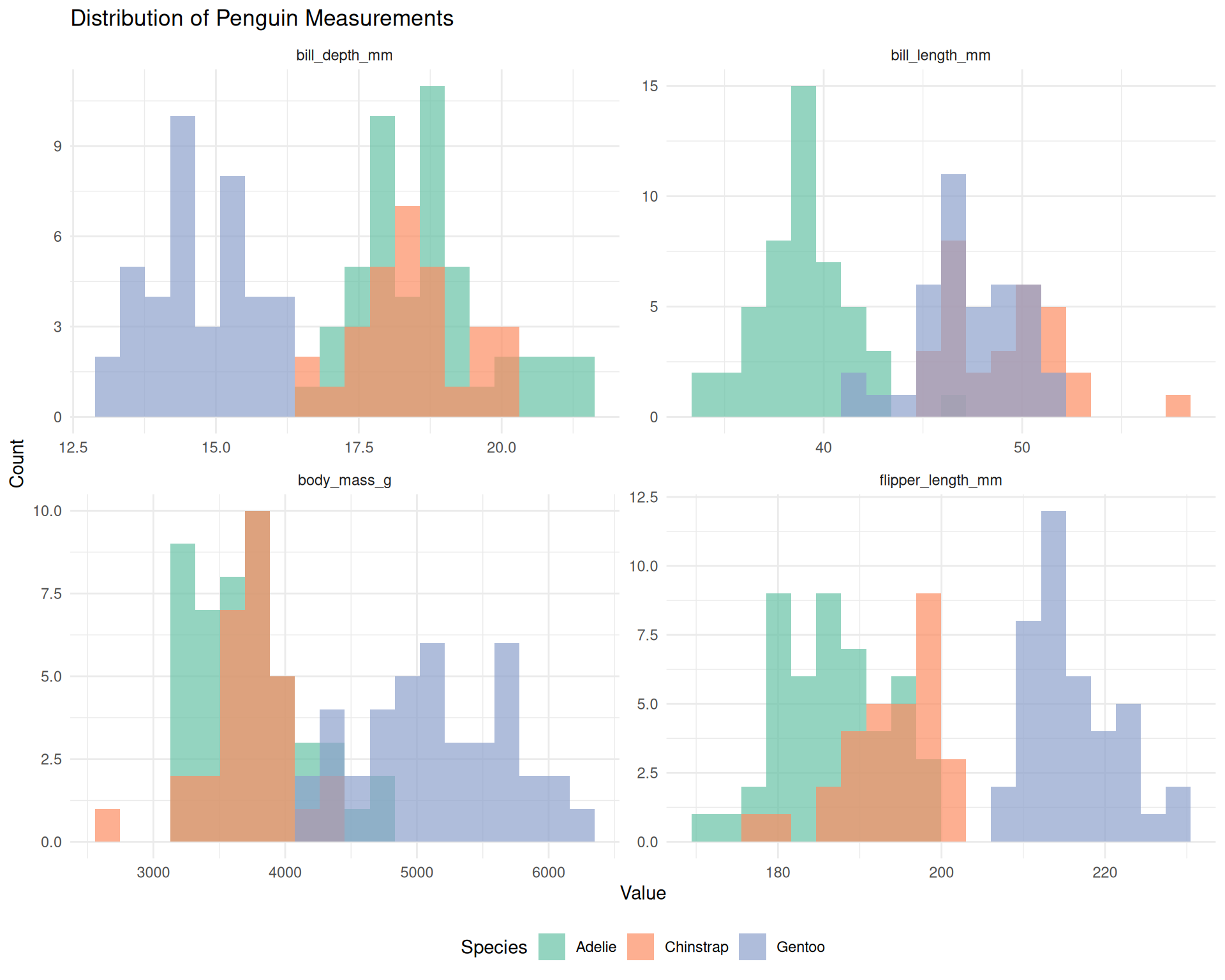 We will work with a messy version of the Palmer Penguins dataset, a popular alternative to the iris dataset for learning data science. The data contains measurements of penguins from three species observed on three islands in the Palmer Archipelago, Antarctica.