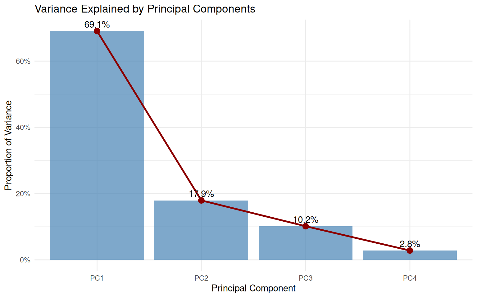 Dimensionality reduction: Applied PCA to understand the multivariate structure of the data.