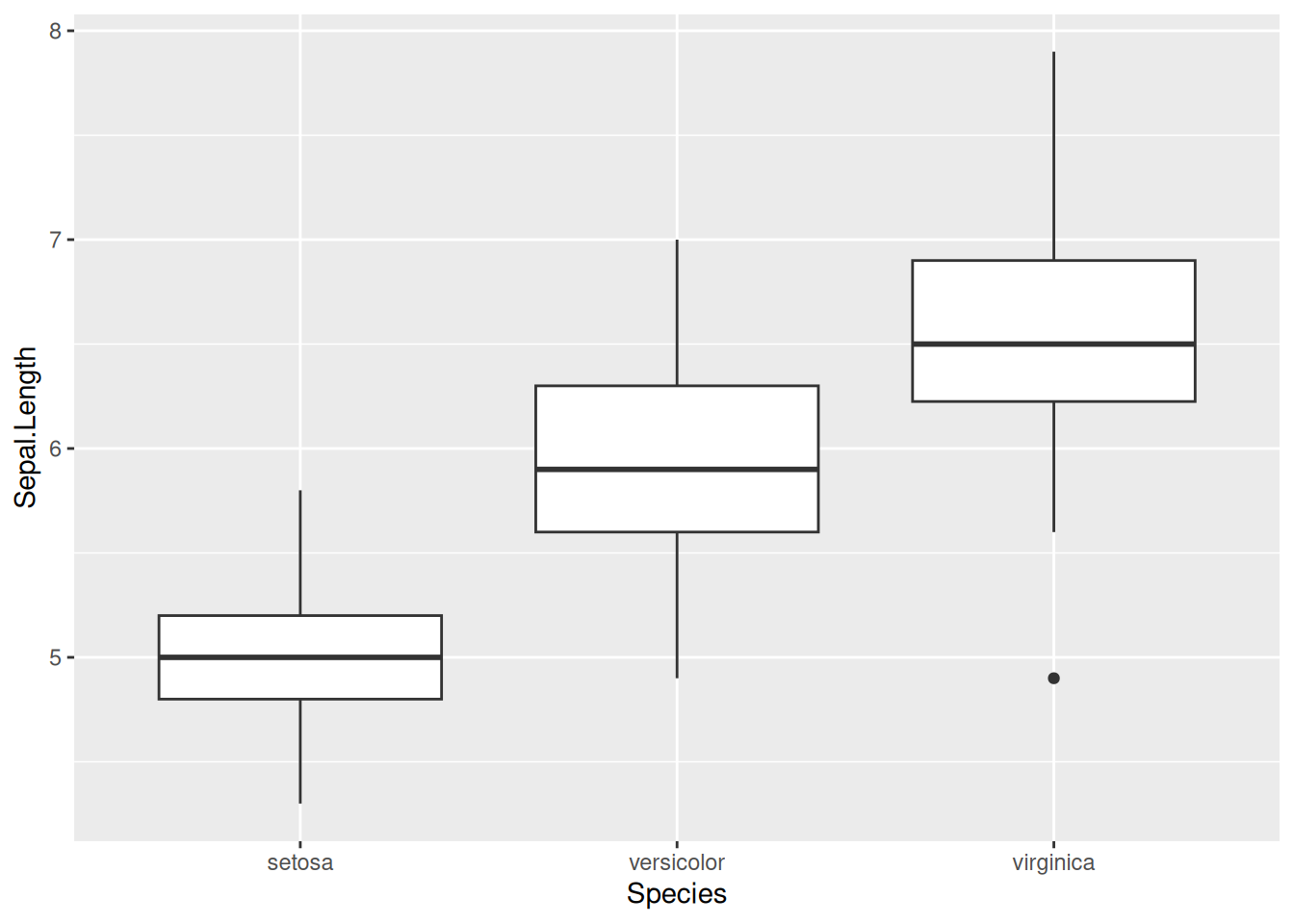 ggplot(iris, aes(x = Species, y = Sepal.Length)) +